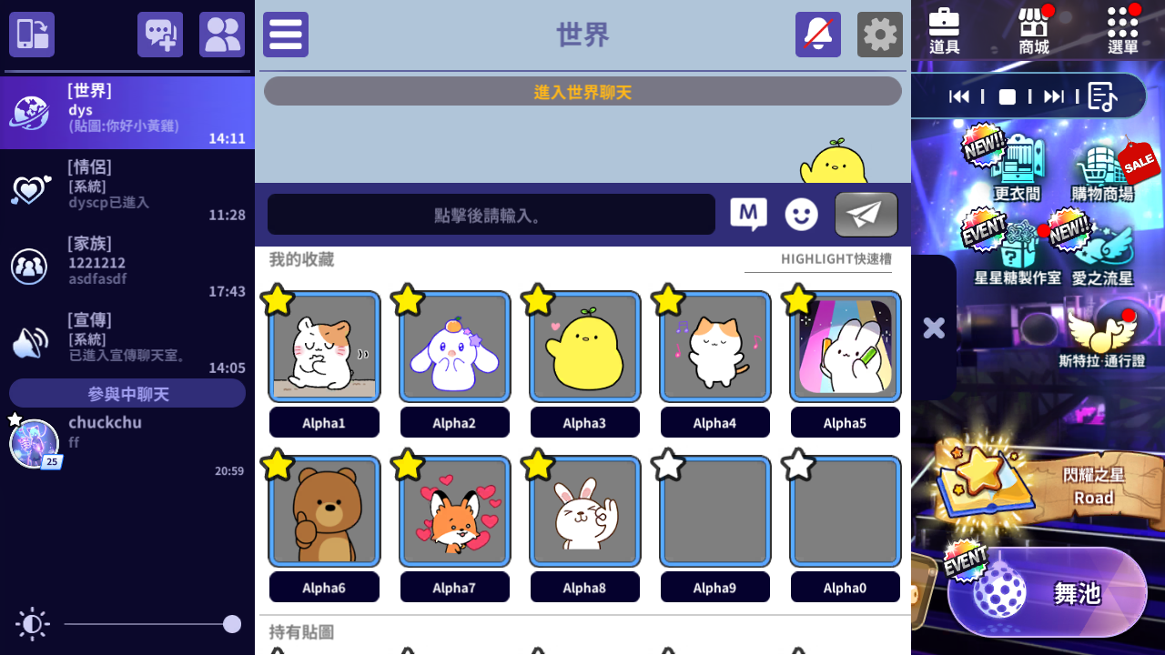 📌聊天內貼圖彈窗UI上的我的收藏和持有的貼圖頁面合併為一個列表,沒有區分標籤。