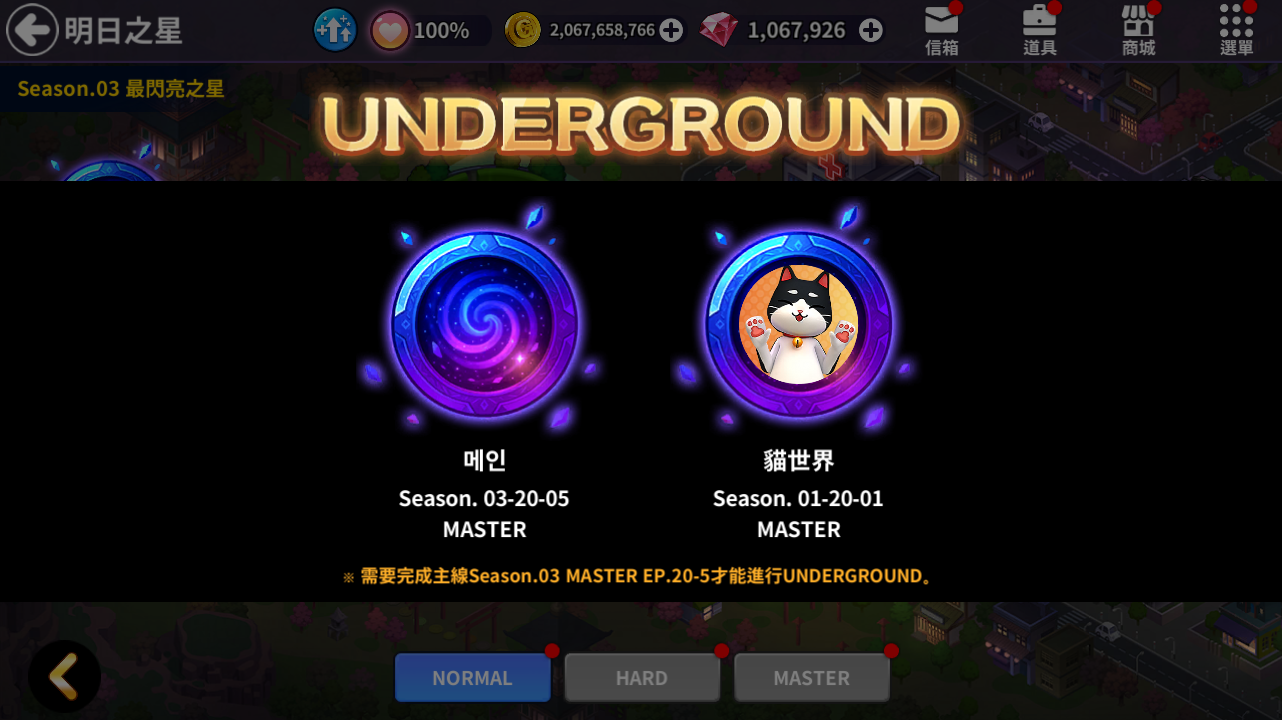 📌明日之星UNDERGROUND是MASTER Season.03 Ep.20 Stage.05全部完成後可以進行。