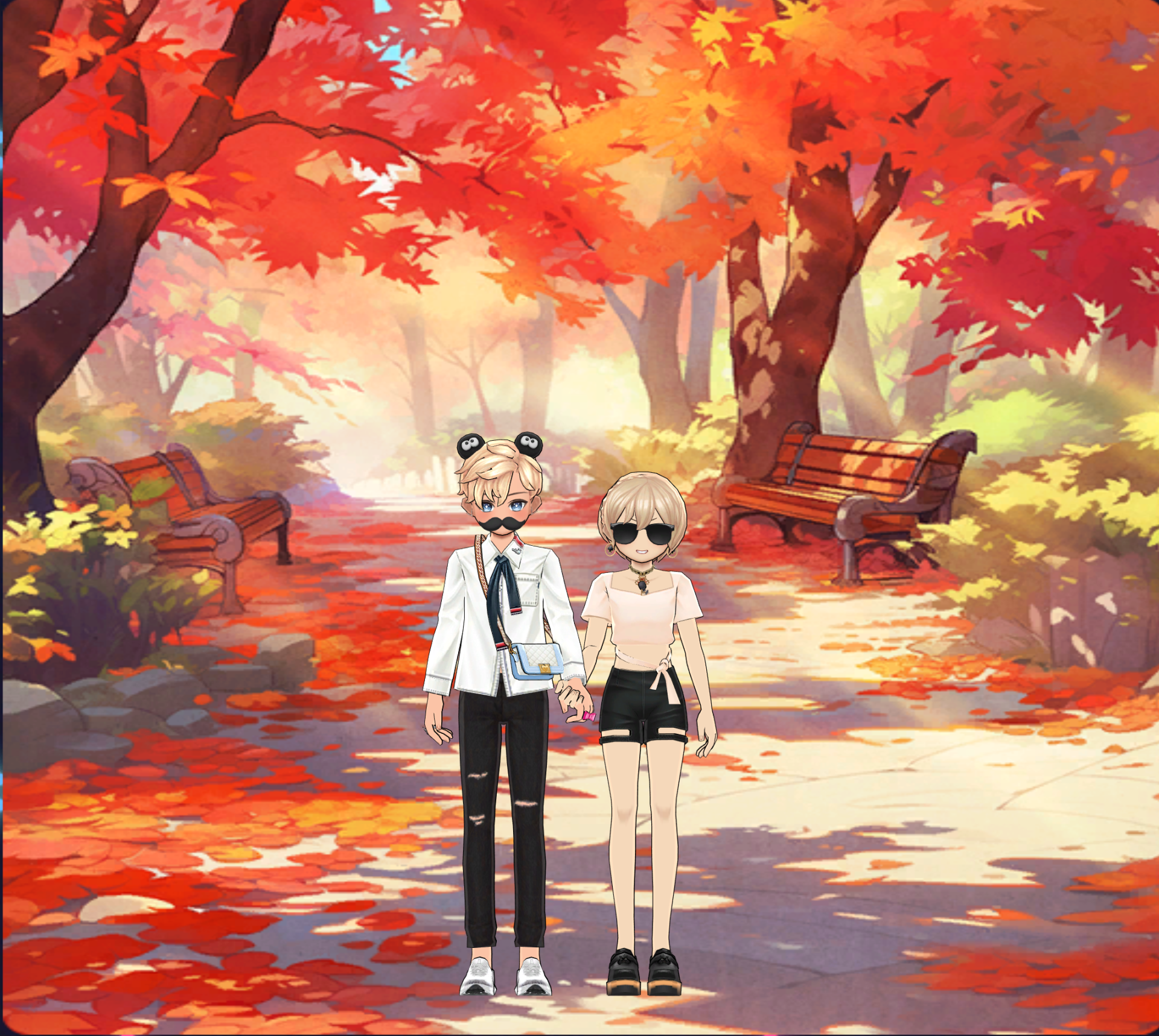 | NEW情侶背景: 鋪滿落葉的長椅前 | NEW情侶POSE:太可愛捏臉Pose |
