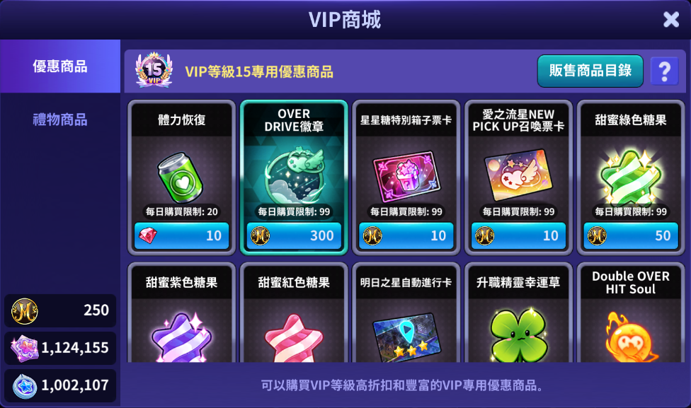 📌依照VIP等級越高, 購買時所需的貨幣就越低